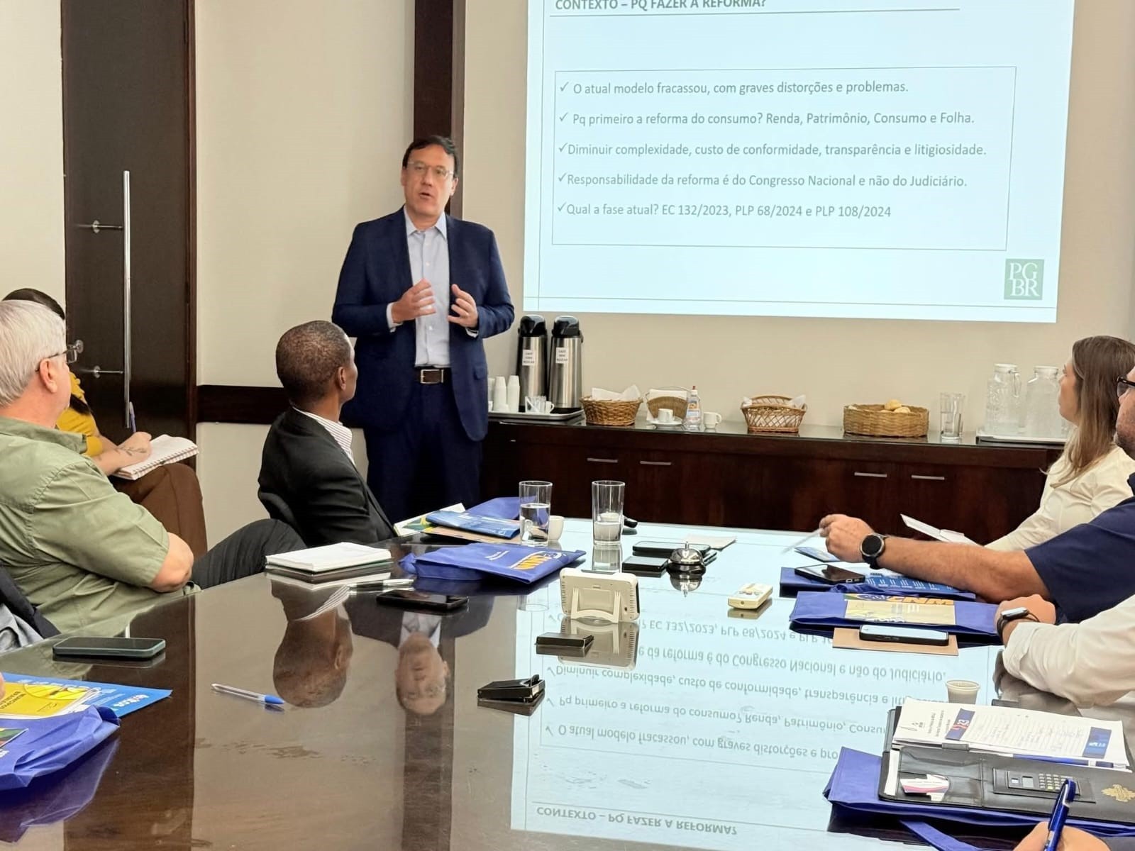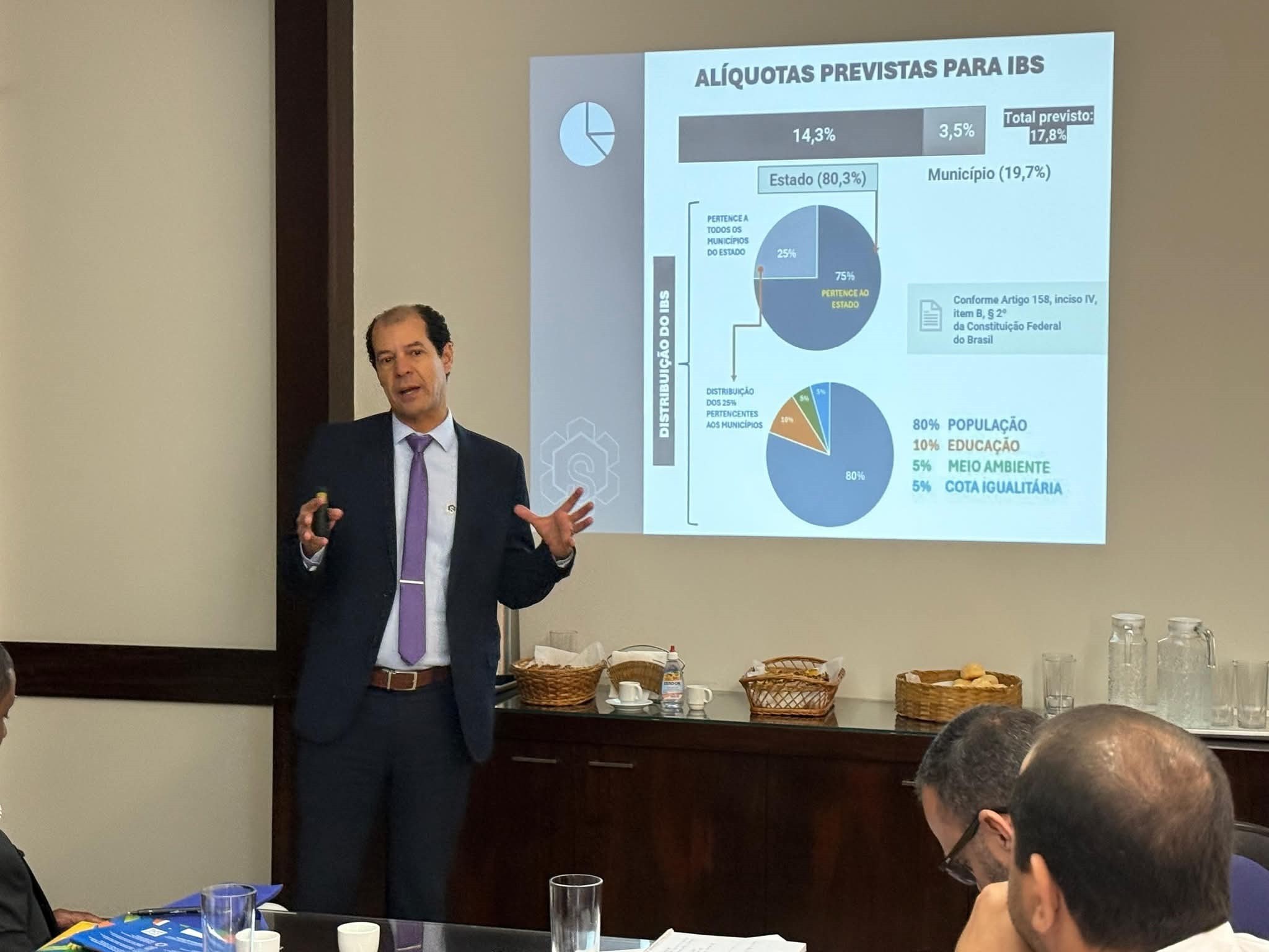 O principal objetivo da reunião foi debater a Nova Reforma Tributária e esclarecer dúvidas dos gestores públicos presentes sobre os impactos e adequações que serão exigidas aos municípios.