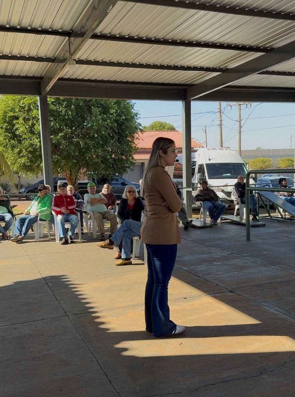 A palestra abordou temas importantes como hipertensão, diabetes, prevenção de quedas, importância da boa alimentação e realização de exercícios físicos.