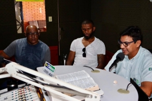 Secretário de Esporte, Dininho, subsecretário Claidson Oliveira e o jogador Alcides participaram nesta segunda-feira do Jornal da Itanews FM