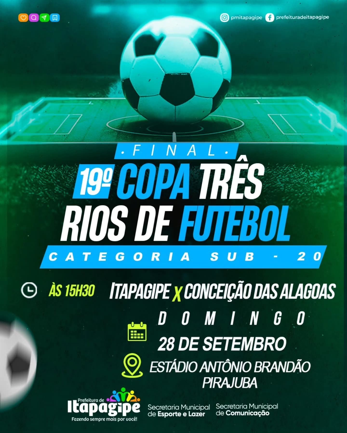 Itapagipe enfrenta Conceição das Alagoas na decisão da 19ª Copa Três Rios Sub-20.
