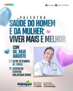 A Secretaria Municipal de Saúde convida toda a população para uma palestra imperdível com o renomado Dr. Júlio Augusto!