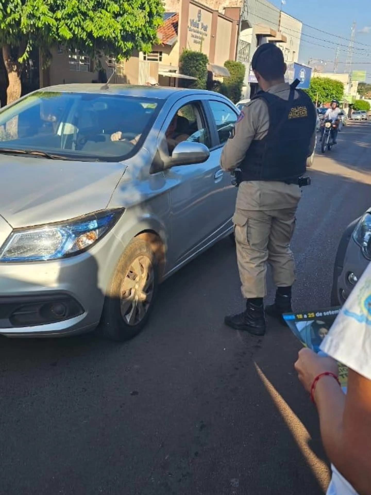 Durante a atividade, condutores foram abordados de forma cordial e educativa, recebendo panfletos informativos e orientações sobre práticas essenciais para a segurança no trânsito.