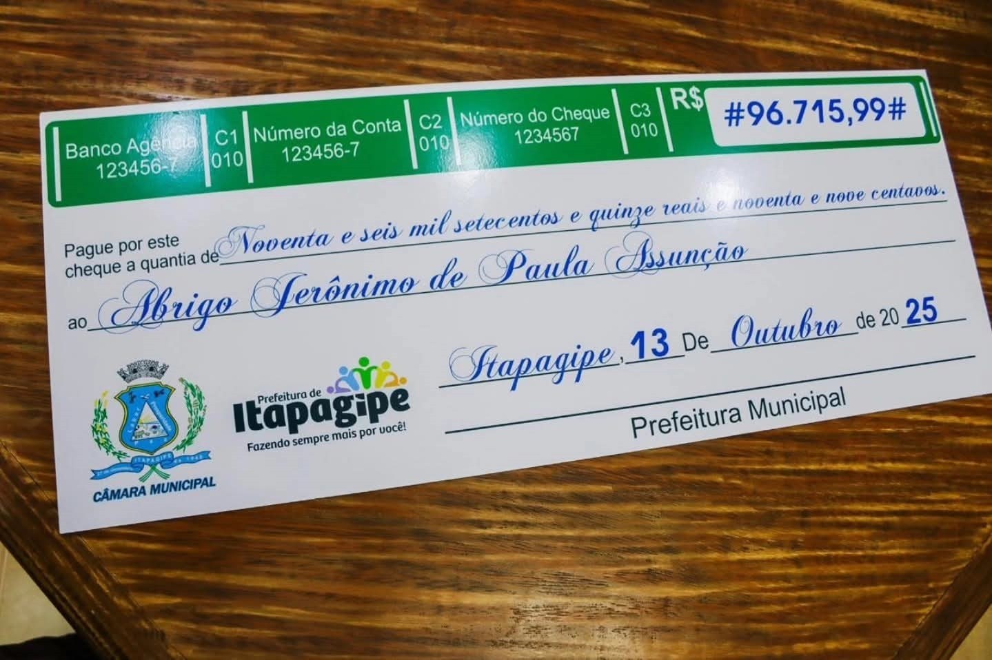 Nesta segunda-feira, 13 de outubro, a Prefeitura Municipal de Itapagipe realizou a entrega de uma subvenção no valor de R$ 96.715,99 ao Abrigo Jerônimo de Paula Assunção.