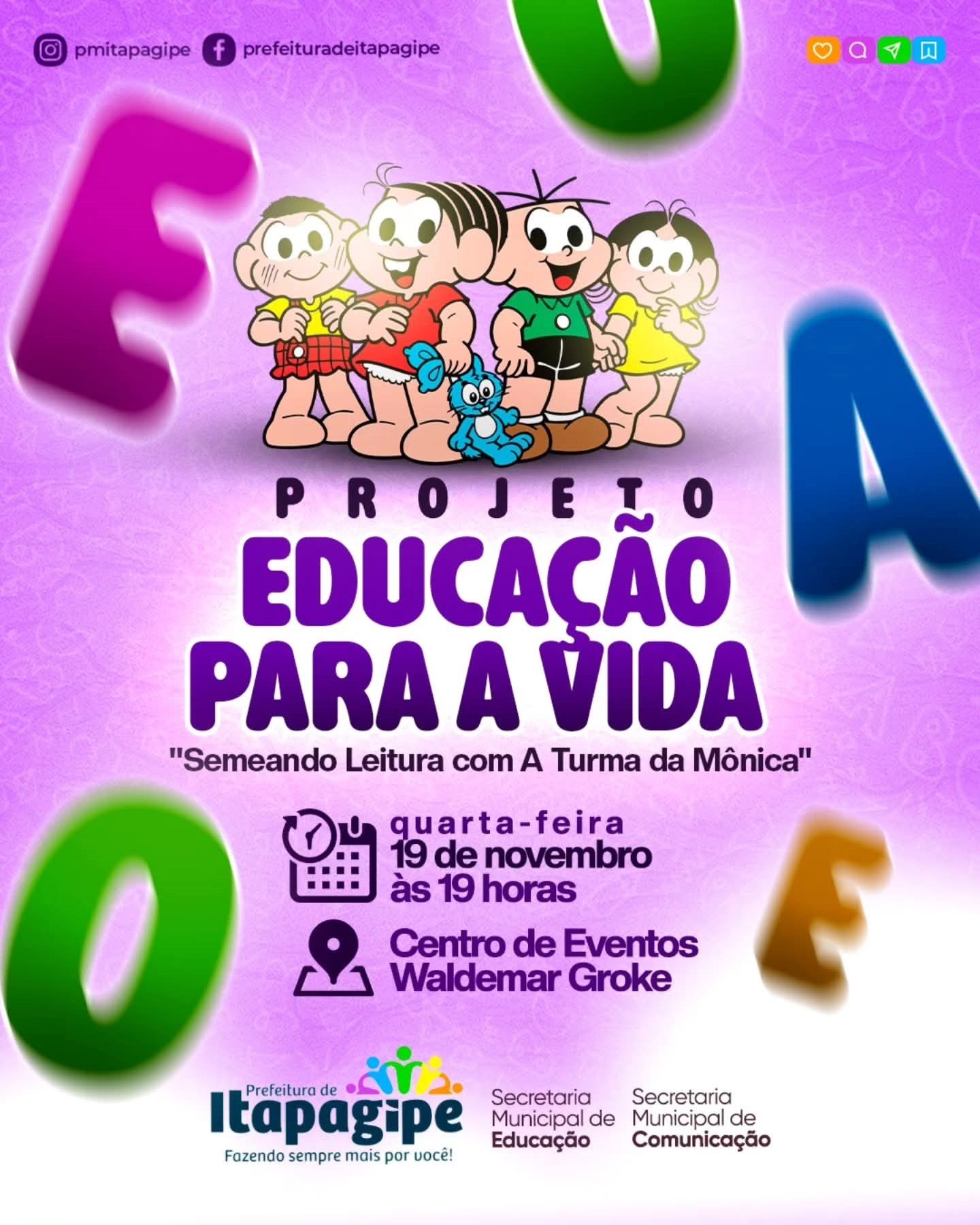 Vem com a gente participar do Projeto Educação para a Vida com o tema “Semeando Leitura com a Turma da Mônica”!