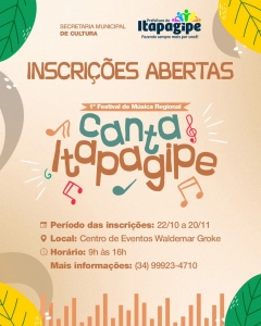 Vem aí, dia 26 de dezembro, o 1º Festival de Música Regional – Canta Itapagipe, um evento feito para celebrar a nossa cultura, os nossos artistas e a força da música regional.