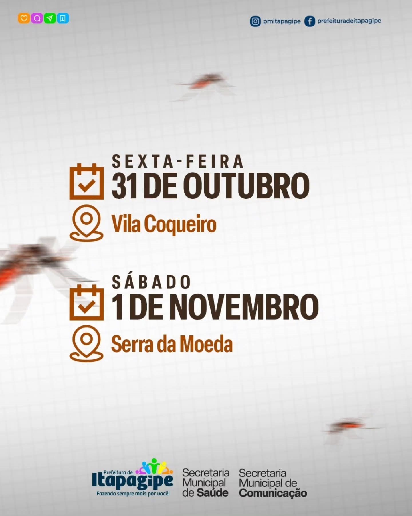 A Prefeitura de Itapagipe, por meio da Secretaria Municipal de Saúde, realizará um mutirão de limpeza contra a dengue entre os dias 27 de outubro e 1º de novembro, percorrendo os bairros da cidade, a Vila Coqueiro e a Serra da Moeda.