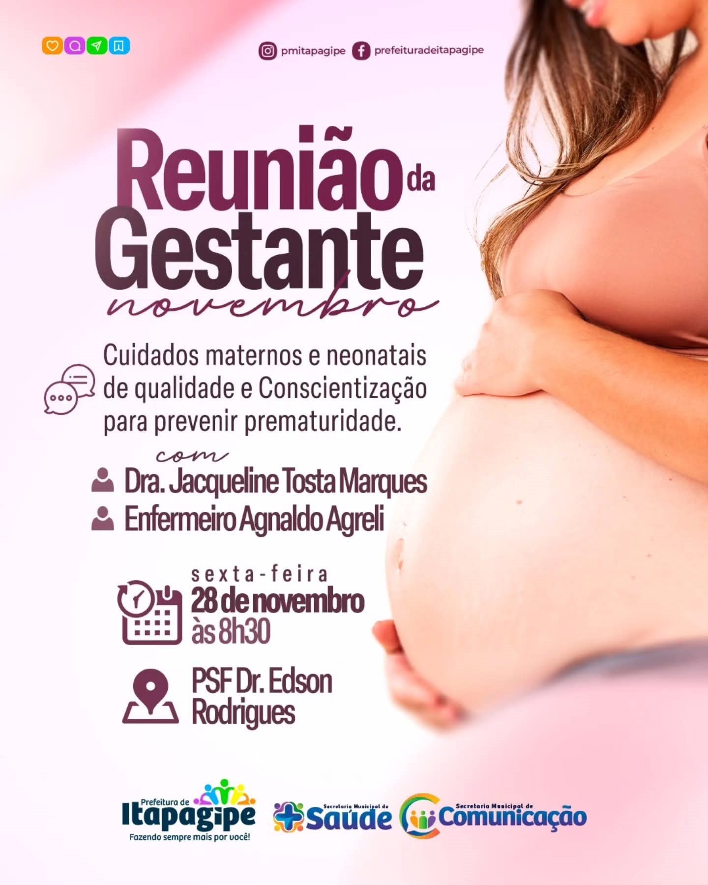 Convidamos todas as gestantes para um encontro especial dedicado à saúde materna e neonatal, com foco na prevenção da prematuridade.