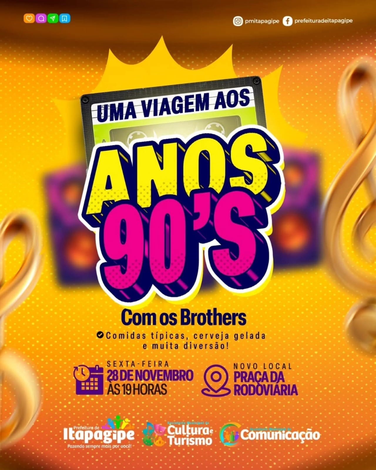 Na Sexta-feira: Uma viagem aos anos 90 com Brothers – Guidas e Diniz e no Sábado: Muito forró e animação com Divino Omar e Luan da Sanfona.