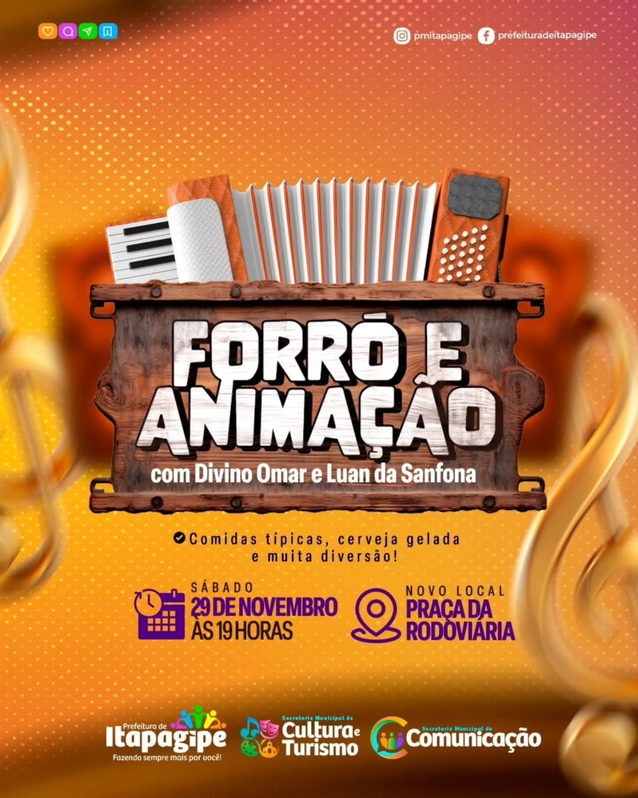 Realização: Secretaria de Cultura e Turismo e Prefeitura de Itapagipe – Fazendo Sempre Mais Por Você!