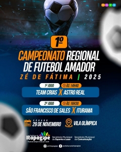 Neste sábado tem mais uma rodada do 1º Campeonato Regional de Futebol “Zé de Fátima”