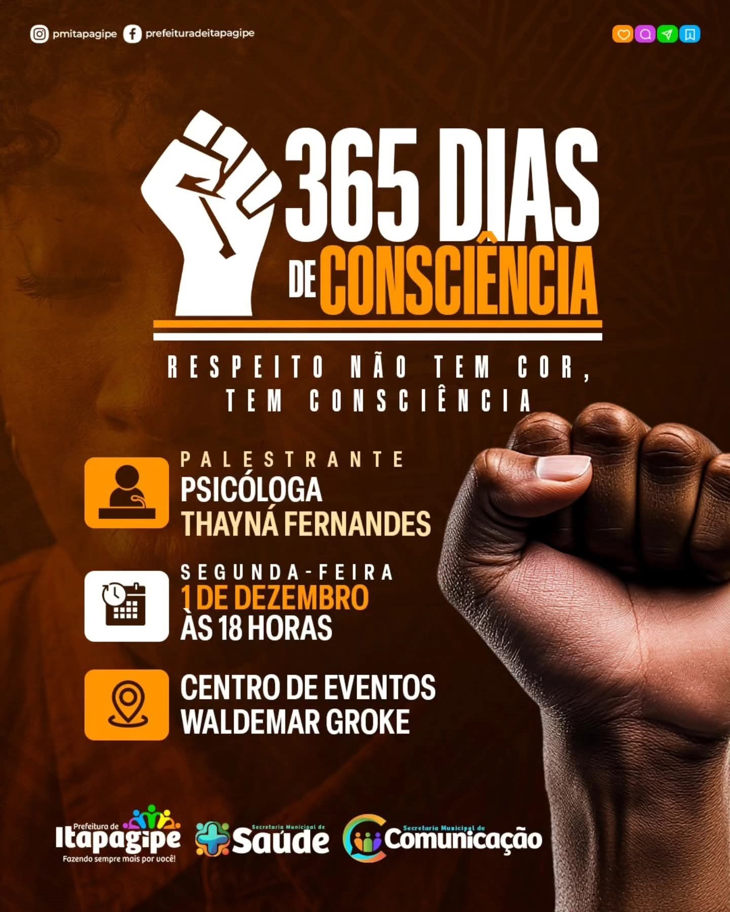 A Secretaria de Saúde convida você para uma palestra especial com a psicóloga Thayná Fernandes, trazendo reflexões importantes sobre igualdade, consciência racial e respeito no nosso dia a dia.