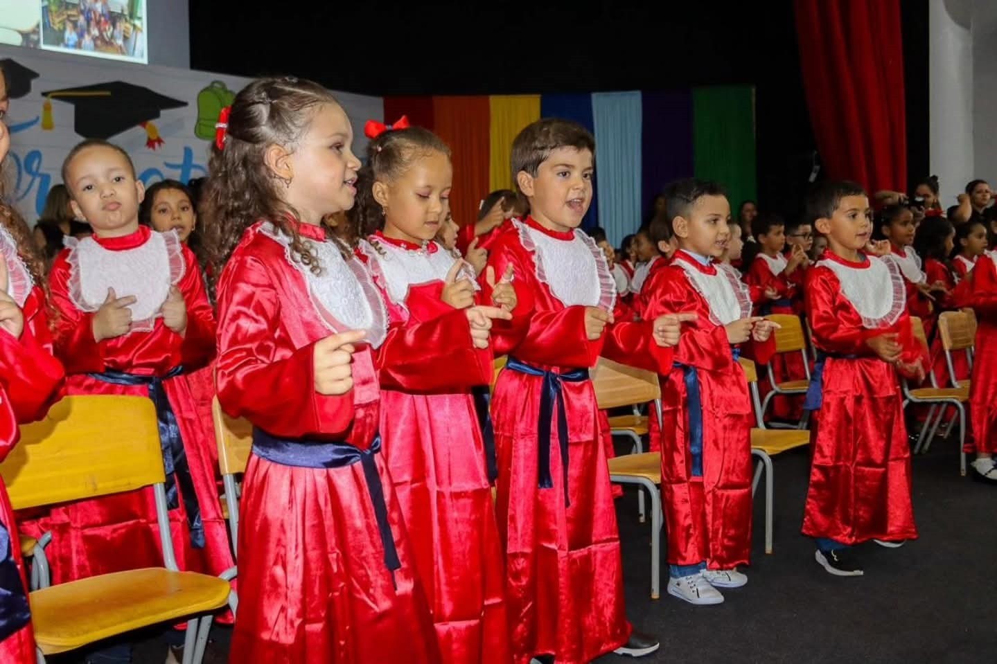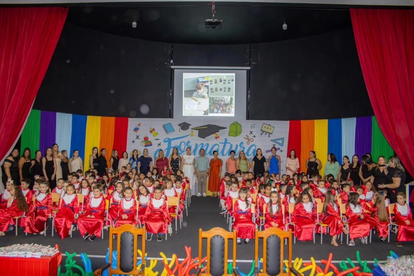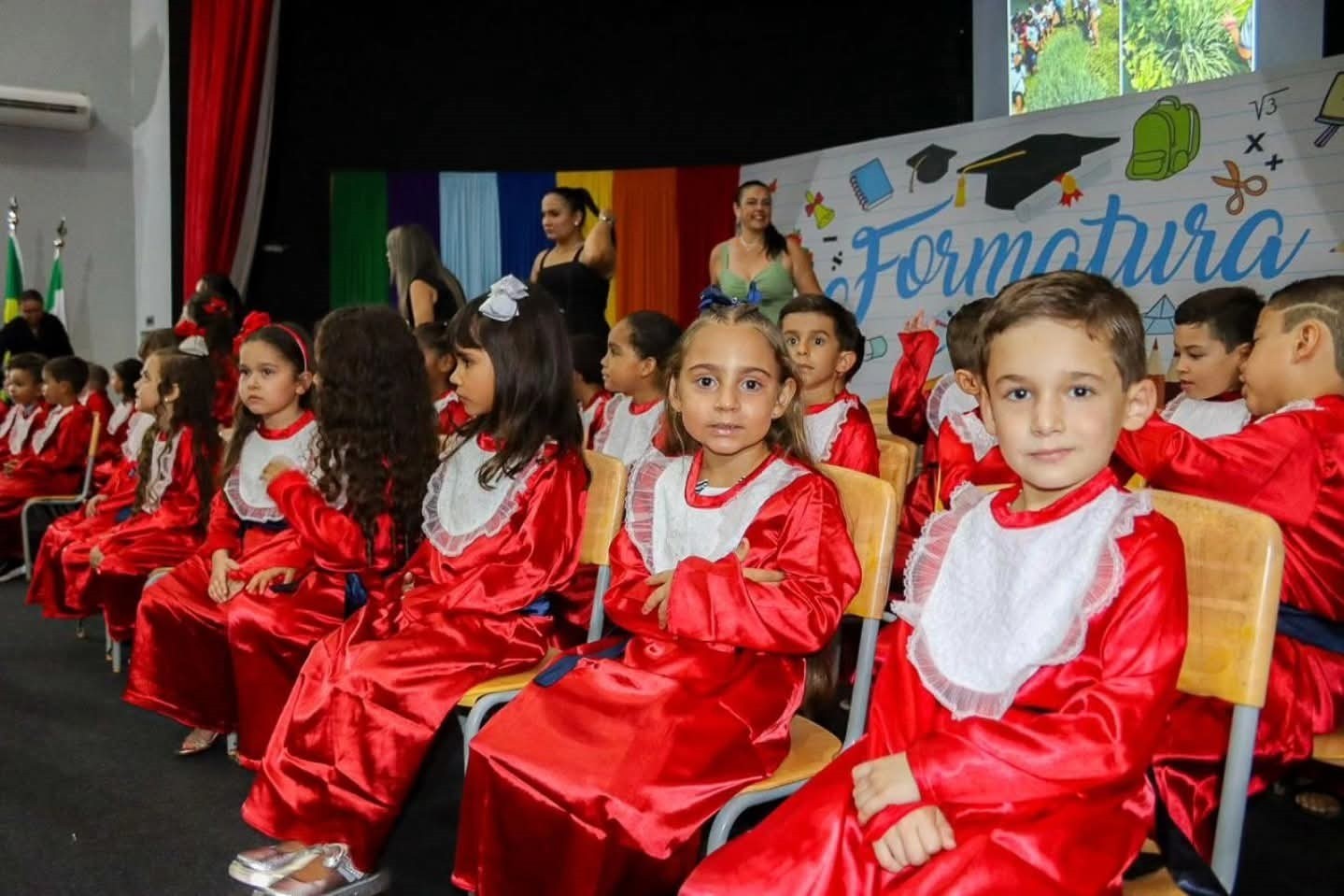 A cerimônia celebrou a conclusão da 31ª turma do Pré-Escolar do Centro Municipal de Educação Infantil (CMEI) Professora Alice Nogueira Andrade e da 1ª turma do Pré-Escolar do CMEI Jane Ferreira Franco.