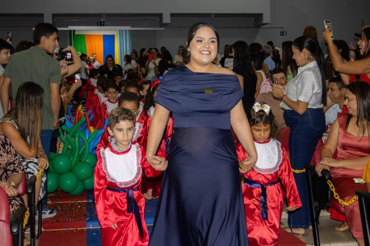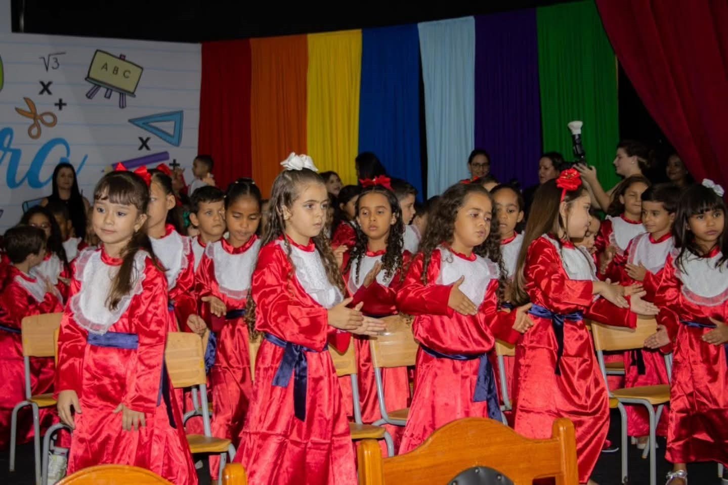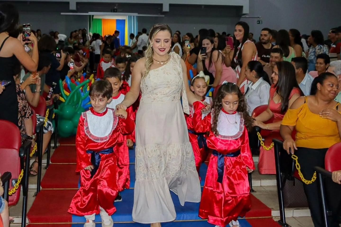A cerimônia celebrou a conclusão da 31ª turma do Pré-Escolar do Centro Municipal de Educação Infantil (CMEI) Professora Alice Nogueira Andrade e da 1ª turma do Pré-Escolar do CMEI Jane Ferreira Franco.