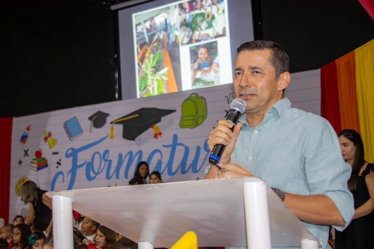 O prefeito reafirmou o compromisso da administração em investir prioritariamente na educação e anunciou que, no próximo ano, a prefeitura realizará a entrega de kits escolares, uniformes e materiais para os estudantes da rede.