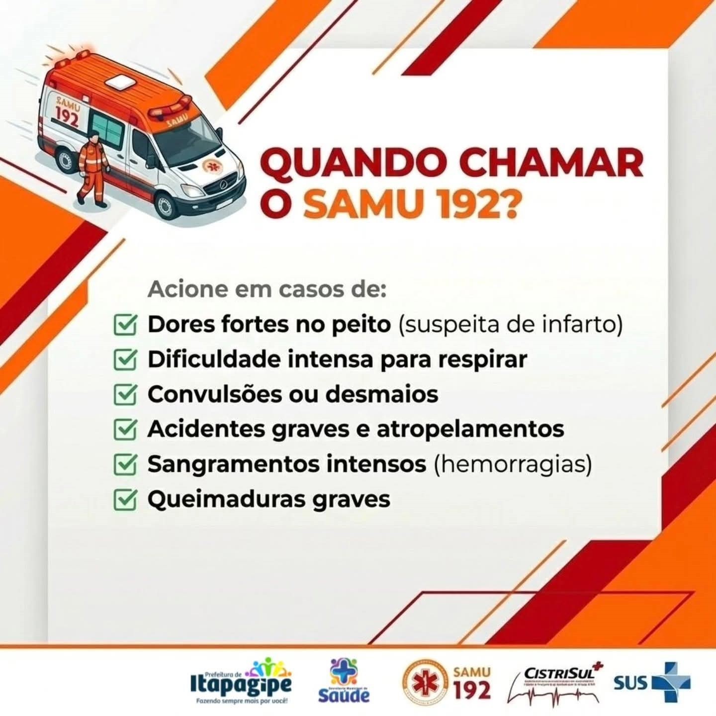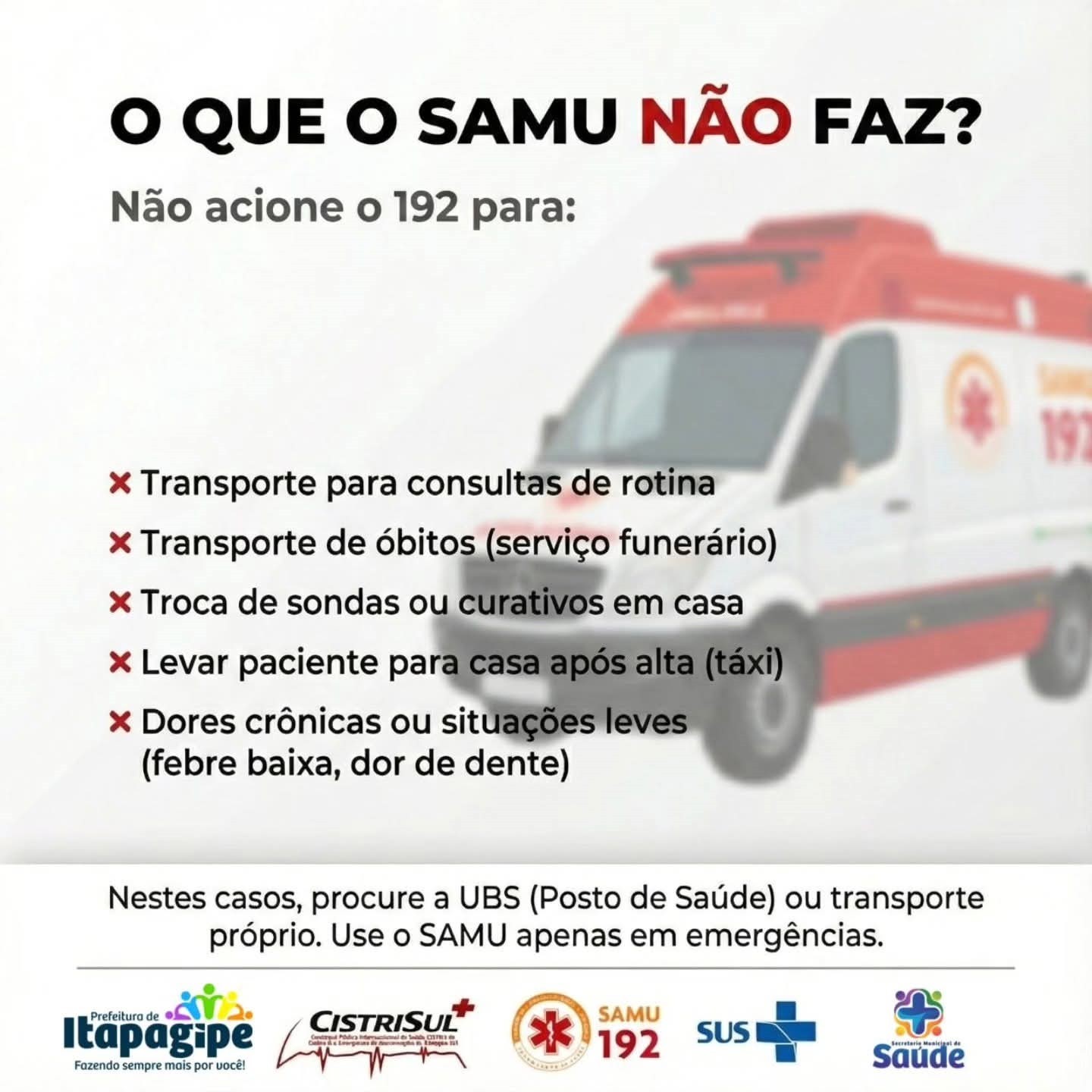 O SAMU 192 deve ser utilizado exclusivamente em situações de emergência.