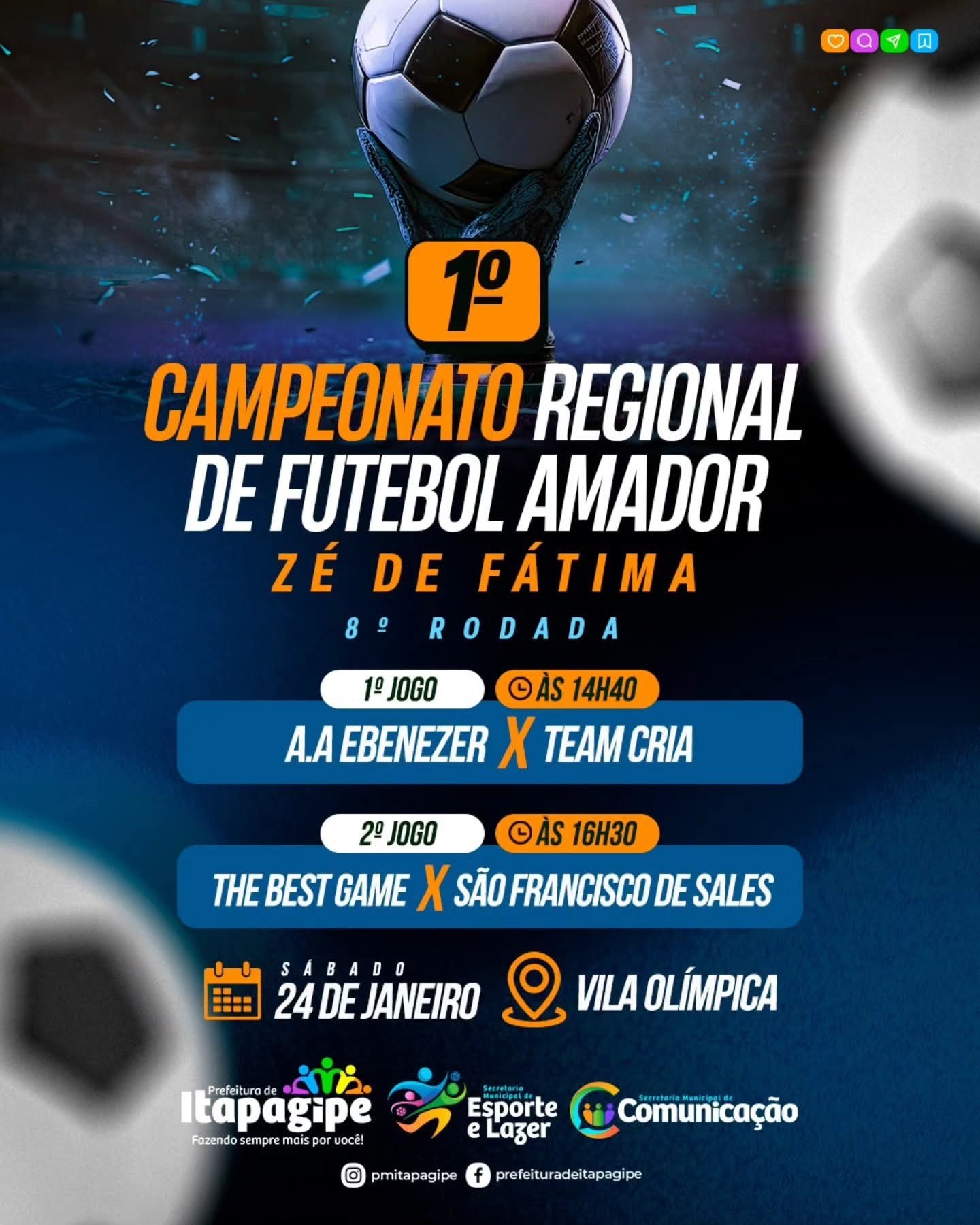 O sábado será de muita bola na rede e disputa em campo com a 8ª rodada do 1º Campeonato Regional de Futebol Amador Zé de Fátima.