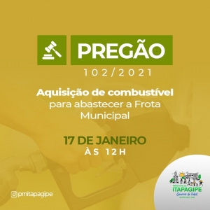 Nesta segunda-feira, dia 17 de janeiro, a partir de 12:00, acontecerá o pregão 102/2021 referente a aquisição de combustível para abastecer o frota municipal.