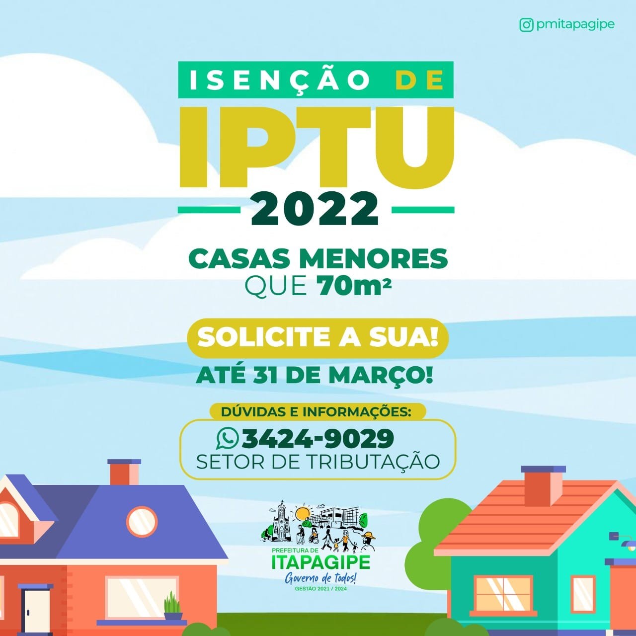 Como feito no ano de 2021, a administração municipal estará realizando a isenção do IPTU no ano de 2022 para casas menores que 70m2.
