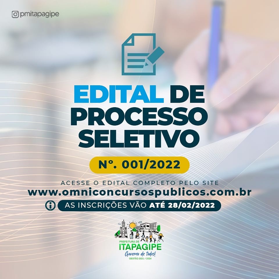 INSCRIÇÕES ABERTAS PARA O PROCESSO SELETIVO 001/2022