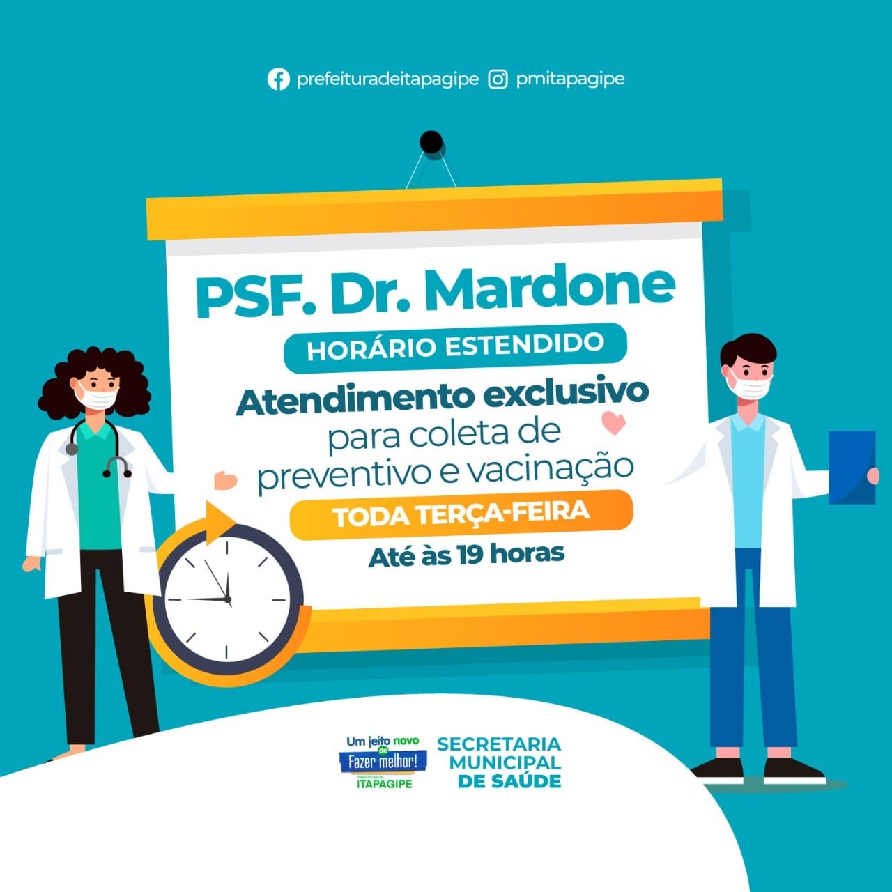 Agora todas as terças, o PSF Dr. Mardone estará funcionando até às 19:00.