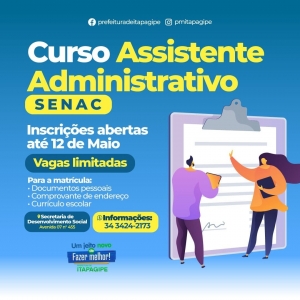 Estão abertas as inscrições para o curso de ASSISTENTE ADMINISTRATIVO!