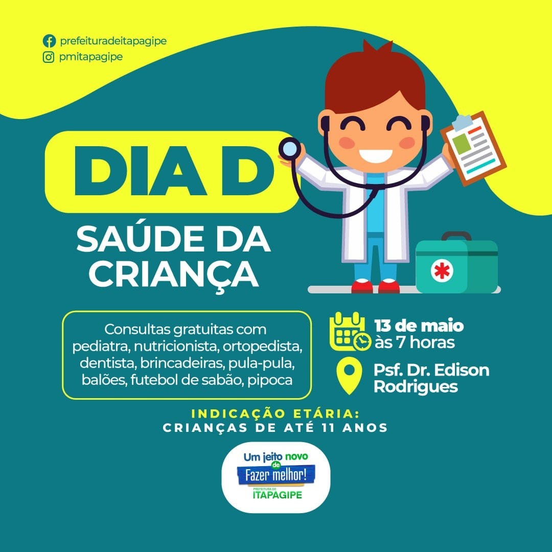 Atenção pais e responsáveis, nesta sexta-feira, dia 13 de maio acontece o DIA "D" DA SAÚDE DA CRIANÇA!