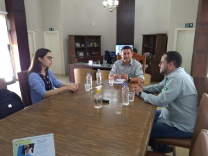O prefeito Ricardo Garcia recebeu nesta manhã, 10 de maio, Lucimara Pavão, Analista de Recursos Humanos da Cobb-Vantress.