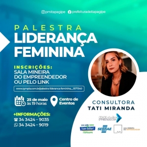 Venha adquirir mais conhecimento sobre seu próprio potencial com a palestra: LIDERANÇA FEMININA ministrada pela Consultora Tati Miranda.