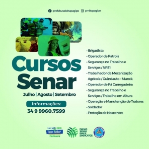 O SENAR em parceria com a Prefeitura de Itapagipe está trazendo diversos cursos profissionalizantes para os meses de julho, agosto e setembro de 2022.