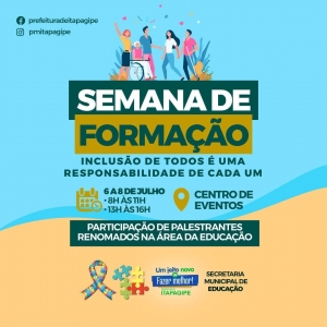 Nos dias 6 a 8 de julho acontece a SEMANA DE FORMAÇÃO dos professores e educadores da rede de ensino municipal de Itapagipe.