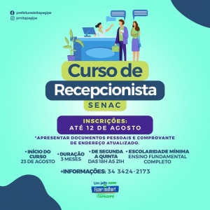 Estão abertas as inscrições para o curso de Recepcionista disponibilizado pelo SENAC em parceria com a Prefeitura