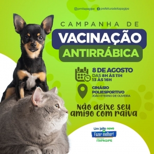 Nesta segunda-feira, dia 08 de agosto, inicia-se a nossa Campanha de Vacinação Antirrabica 2022!