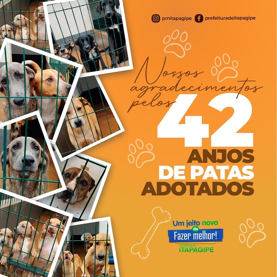 42 animais foram adotados, graça as diversas campanhas de conscientização encabeçadas pela administração municipal