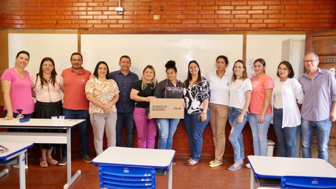 O Prefeito Ricardo Garcia fez a entrega Notebooks ás turmas vencedoras da Campanha de vacinação SAÚDE PARA TODOS