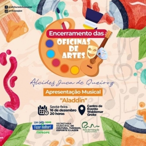 No dia 16 de dezembro acontece o Encerramento das atividades das Oficinas de Artes "Alcides Juca de Queiroz".