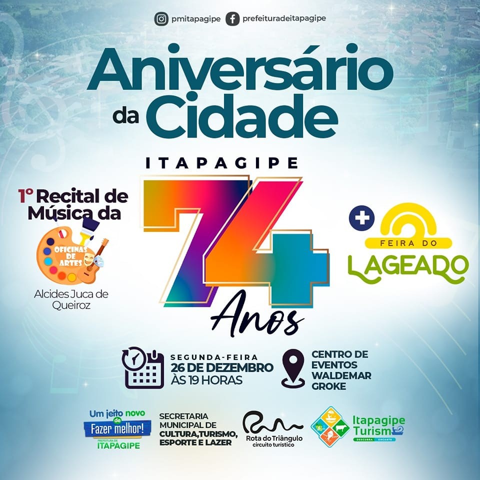 Convide sua família e seus amigos e venha parabenizar Itapagipe pelos seus 74 anos!