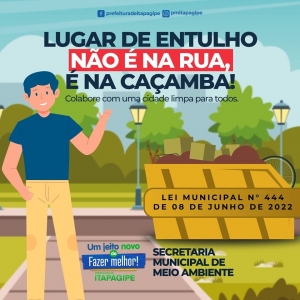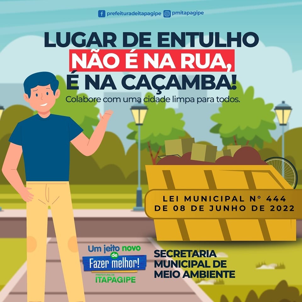 Ressaltamos que o município publicou a Lei nº 444 de 08 de junho de 2022 que autoriza o município a ceder gratuitamente , através da Secretaria do Meio Ambiente, caçambas para o descarte de entulhos.