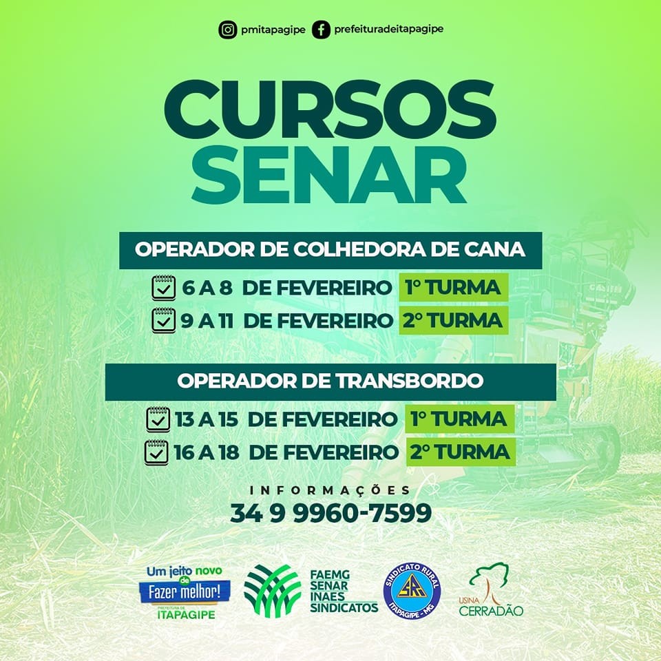 Comece 2023 investindo em seu currículo de trabalho se matriculando nos cursos gratuitos que a Prefeitura de Itapagipe disponibiliza em parceria com o SENAR!