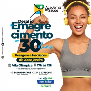 Vem aí , o primeiro "Desafio de Emagrecimento Em 30 dias" do ano de 2023!