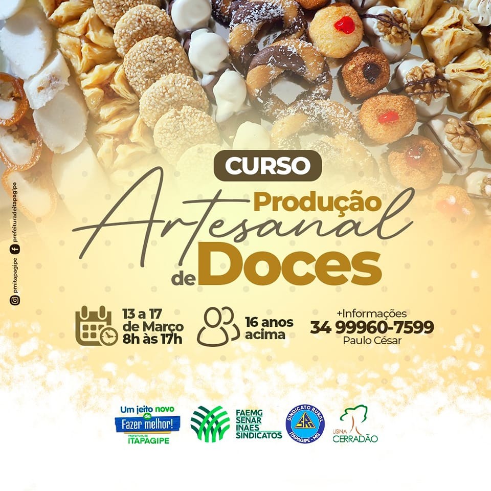 A Prefeitura em parceria com o SENAR trás pra nossa cidade, o curso de Produção Artesanal de Doces.