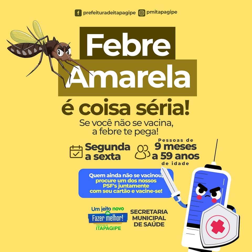 A Secretaria Municipal de Saúde convoca todas as pessoas com idade entre 09 meses a 59 anos que ainda NÃO foram vacinadas contra a febre a amarela