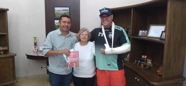Carinhosamente chamada de Tia Maria, veio presentear o prefeito com dois livros em que ela e sua filha Adriana Queiroz tem participação efetiva.