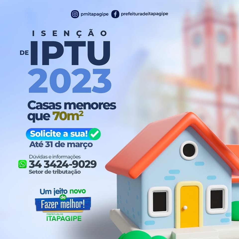 A administração municipal estará realizando a isenção do IPTU no ano de 2023 para casas menores que 70m2