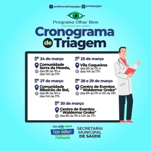 Você que quer ser beneficiado pelo Programa Olhar Bem, fique atento ao nosso cronograma com as datas, horários e locais estipulados e compareça.