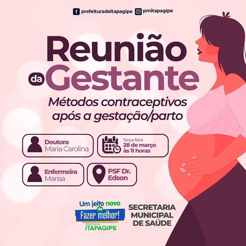 Anote na sua agenda e venha para a Reunião da Gestante, você é mais que bem vinda!