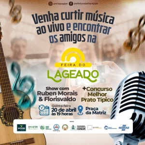 Nesta quinta-feira, véspera de feriado, dia 20 de abril, a partir das 19:00, teremos show ao vivo com Ruben Morais & Florisvaldo e também o concurso do melhor prático típico de Itapagipe!