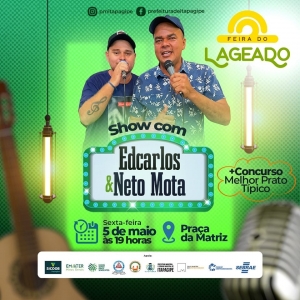 Teremos música ao vivo com a dupla Edcarlos & Neto Mota e a final do Concurso do Melhor Prato Típico!