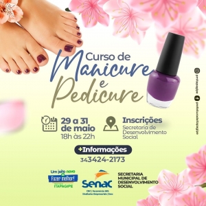 A Prefeitura de Itapagipe em parceria com o SENAC trás mais um curso profissionalizante na área da estética: manicure e pedicure.