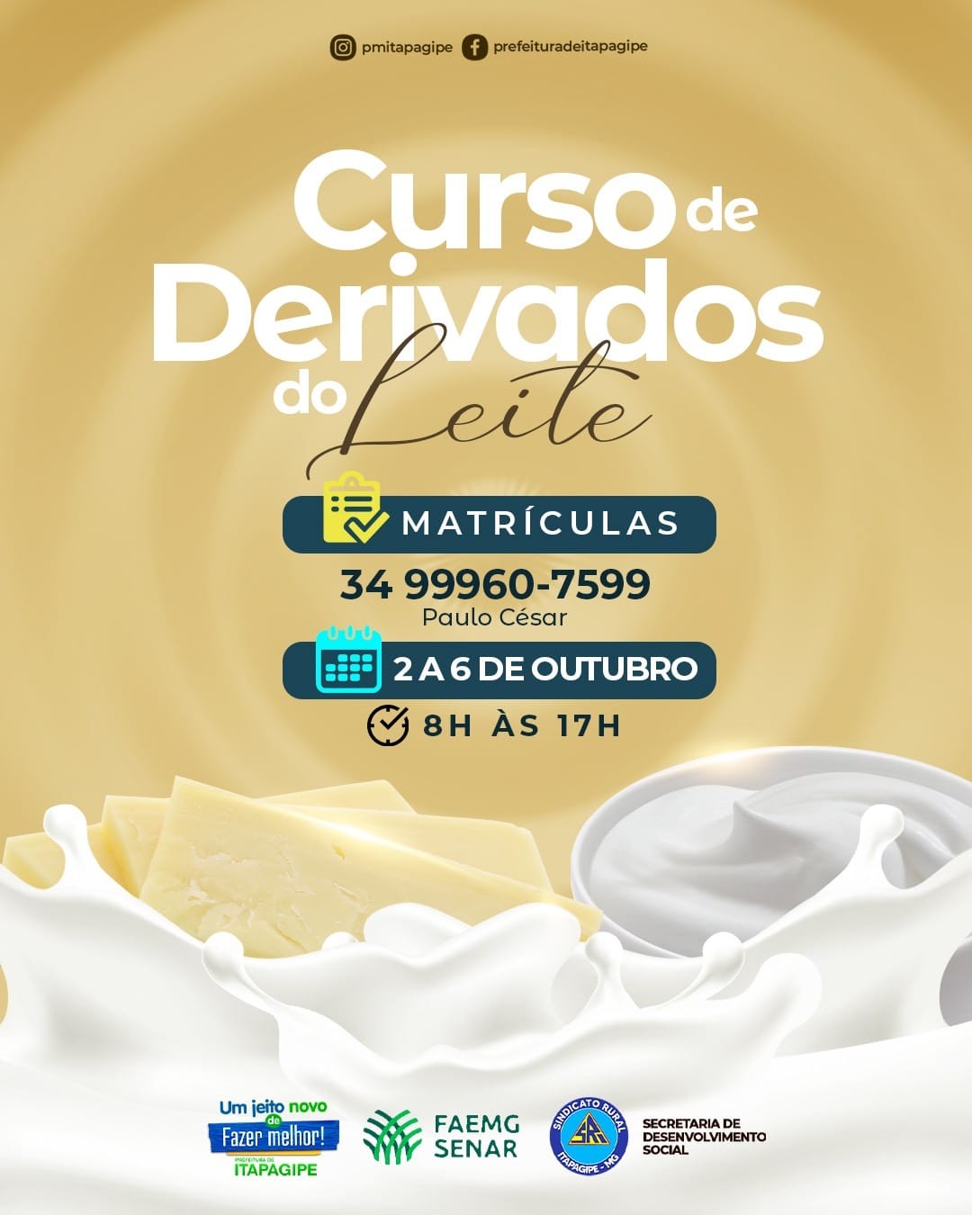 A Prefeitura de Itapagipe em parceria com o SENAR trás mais esse curso na área da gastronomia e agronegócio de forma gratuita para nosso município.