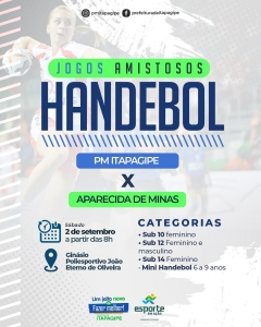 Estaremos recebendo as equipes de Aparecida de Minas para um amistoso no Ginásio Poliesportivo João Eterno de Oliveira!